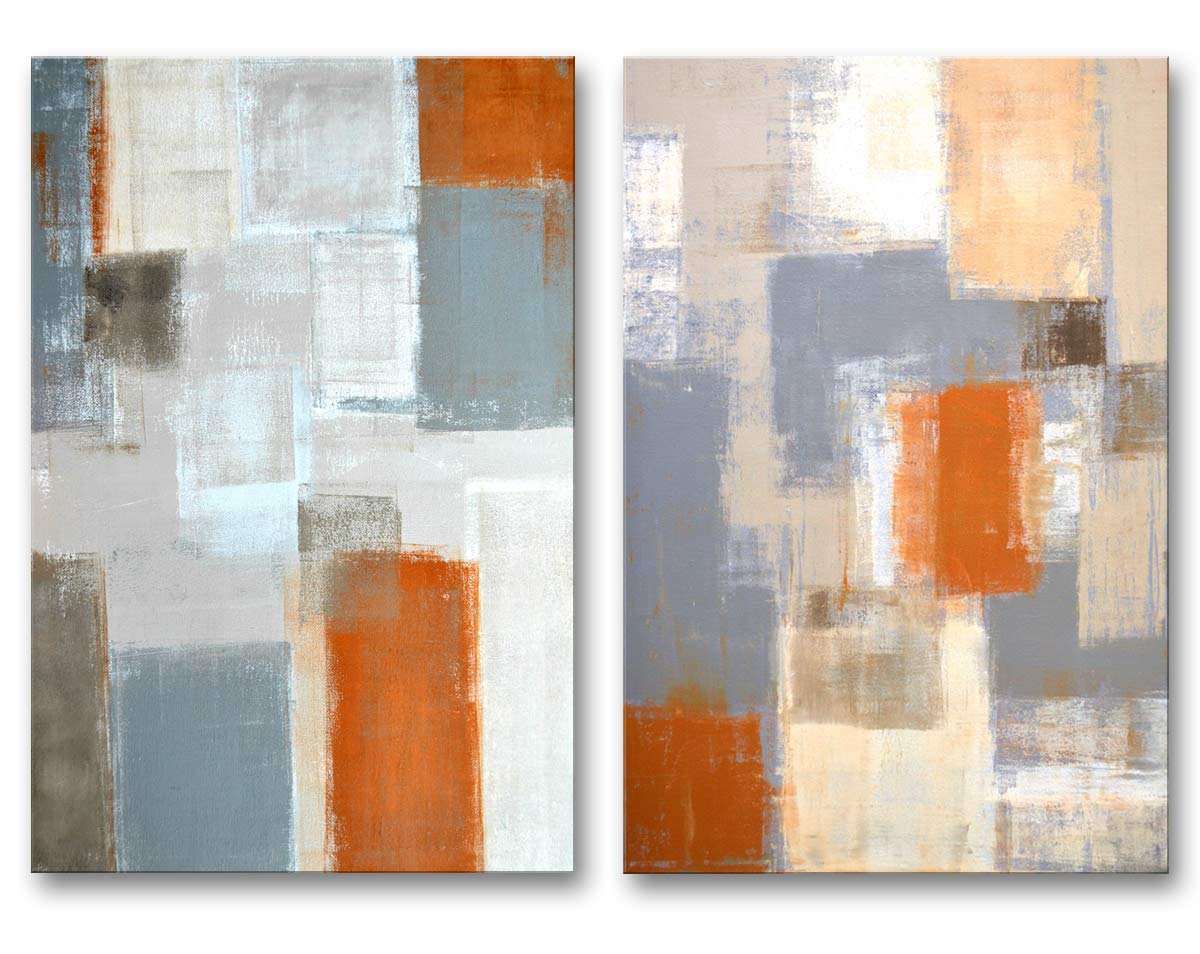Amazon Com Decor Well Abstract Orange And Gray Wall Art Prints On Stretched Canvas Modern Decor Set Posters Prints