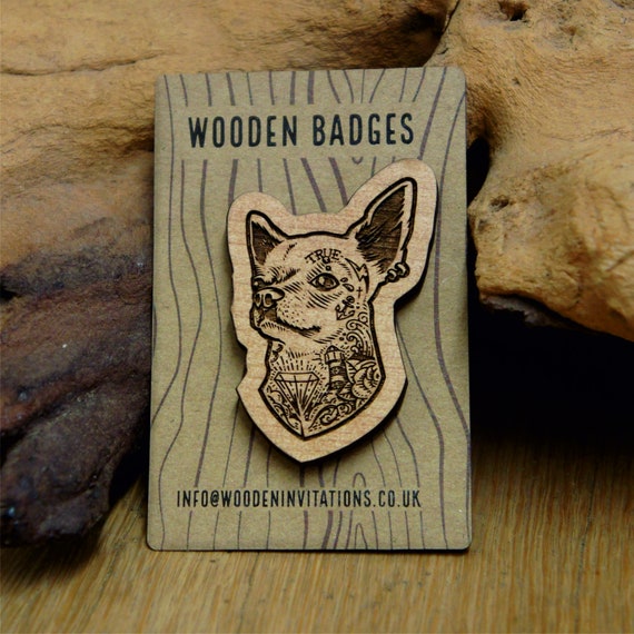 Wooden Chihuahua Badge Wooden Pin Wooden Brooch Tattooed Etsy Ireland